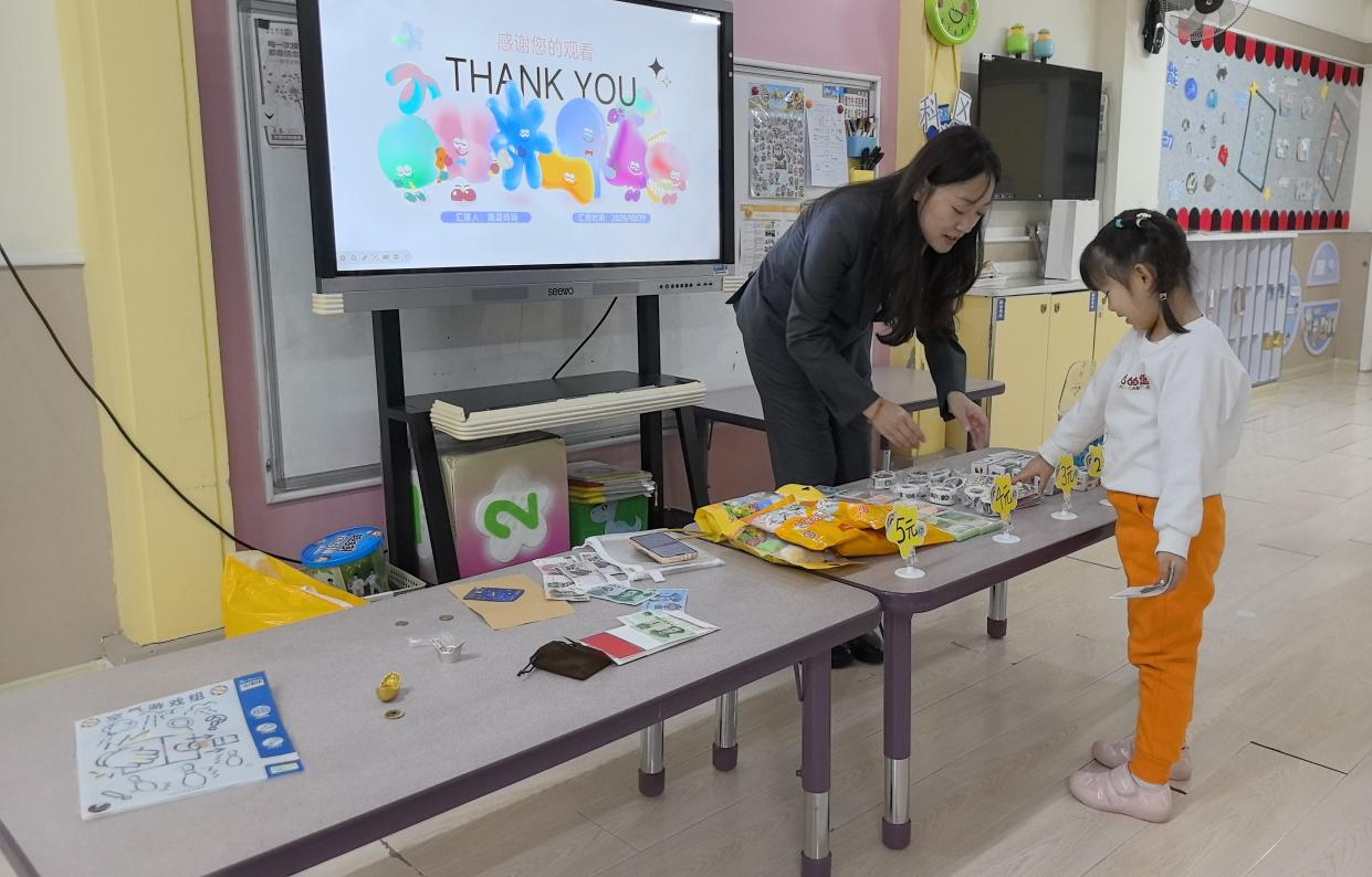 考慮到幼兒注意力特點(diǎn),主講人王琳還設(shè)計(jì)了“錢幣小法官”游戲:她展示不同場(chǎng)景卡片,比如“小朋友幫媽媽保管手機(jī),不隨便點(diǎn)開付款鏈接”“陌生人要借手機(jī)轉(zhuǎn)賬,小朋友說(shuō)‘要問(wèn)爸爸媽媽’”,讓孩子們判斷“做得對(duì)不對(duì)”。孩子們積極舉手,有的站起來(lái)模仿卡片里的小朋友說(shuō)話,有的拉著同伴一起討論,原本抽象的安全規(guī)則,變成了能判斷、能模仿的具體行為,現(xiàn)場(chǎng)笑聲與回答聲此起彼伏,連老師都忍不住加入互動(dòng)。