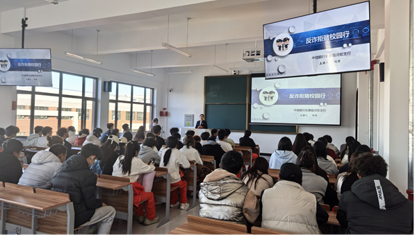 活動(dòng)現(xiàn)場(chǎng),臨河街支行的工作人員結(jié)合高校校園詐騙的高發(fā)特點(diǎn),以通俗易懂的語言為師生們帶來了一場(chǎng)干貨十足的反詐宣講。宣講環(huán)節(jié)中,工作人員首先從“什么是電信網(wǎng)絡(luò)詐騙”切入,系統(tǒng)講解了電信網(wǎng)絡(luò)詐騙的定義、常見類型及隱蔽性、迷惑性特點(diǎn),讓師生們對(duì)這類違法犯罪行為建立起清晰認(rèn)知。隨后,通過“以案說詐”的形式,工作人員選取了近年來高發(fā)的校園貸、刷單返利、冒充老師同學(xué)借錢、虛假購物退款等典型詐騙案例,深入剖析了詐騙分子的作案手法、話術(shù)陷阱以及受害者的受騙心理,用真實(shí)案例敲響安全警鐘,讓師生們直觀感受詐騙的危害性。