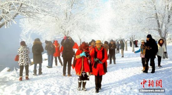 冰雪旅游市場為吉林航空運輸提供客源基礎(chǔ),圖為游客觀賞吉林霧凇。(資料圖) 吉林市委宣傳部供圖